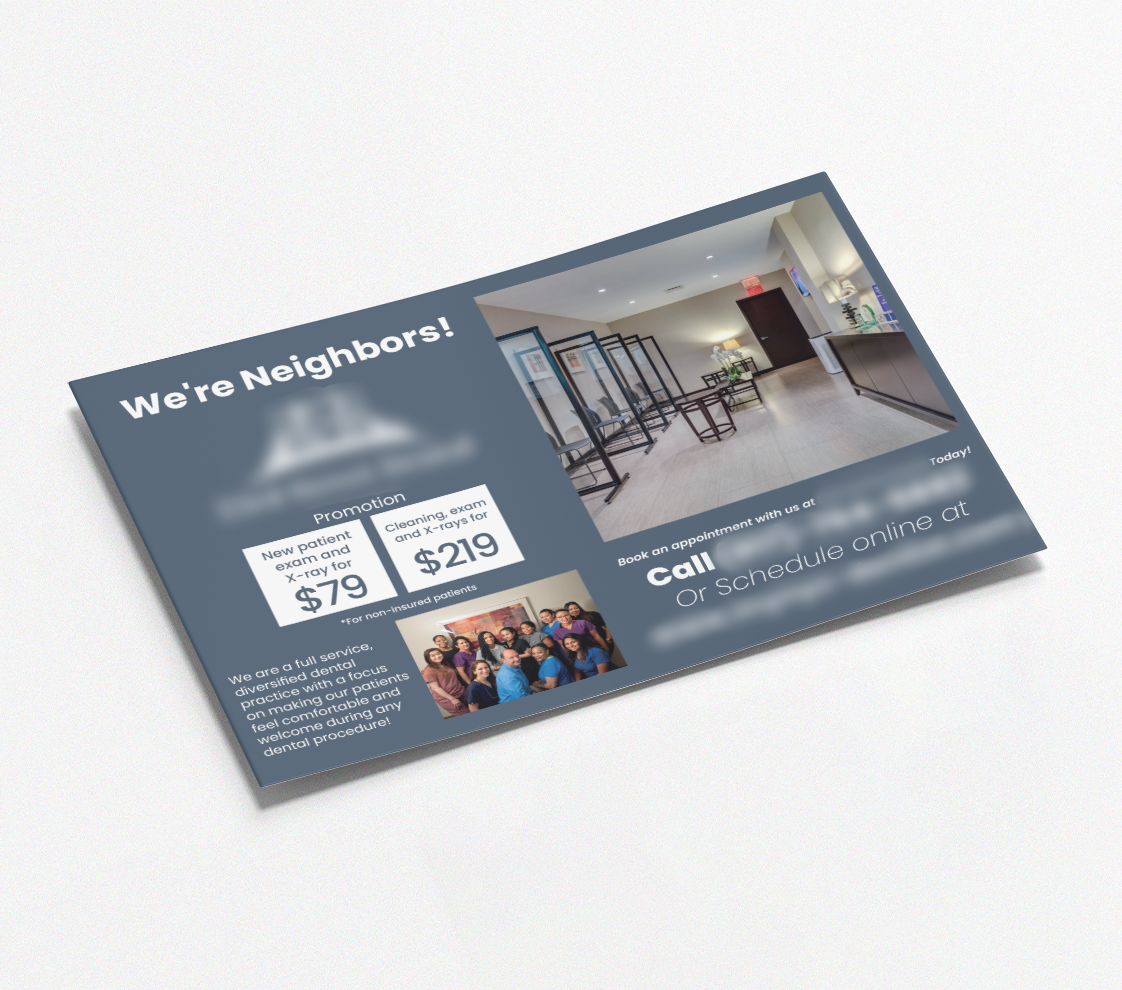 For some kinds of practices, direct mail such as letters, brochures and postcards can still be an effective way to market your office. From dental practices to eye doctors, we can design beautiful & effective printed material and handle your entire campaign, from planning carrier routes or mailing lists to printing and mailing to reporting on results.